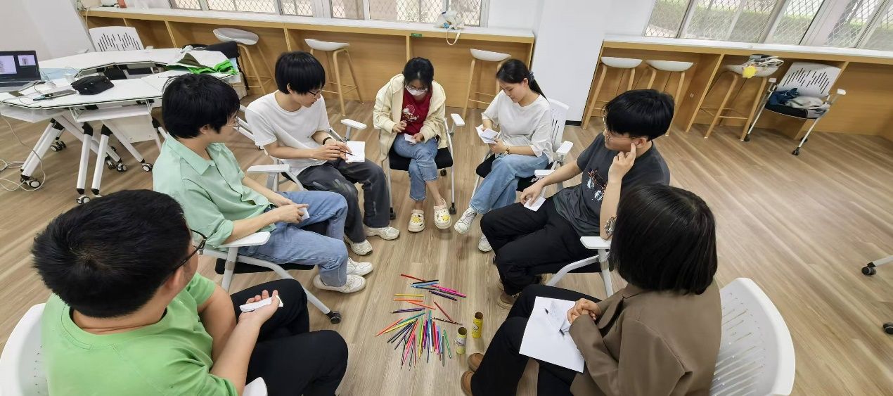 贾阳老师引导参与者通过艺术表达实现自我对话,同时促进相互间的理解支持。活动现场气氛活跃,既有游戏互动的欢声笑语,也不乏真诚的情感共鸣。参与学生表示,活动既缓解了科研压力,也提升了团队协作与情绪管理能力。