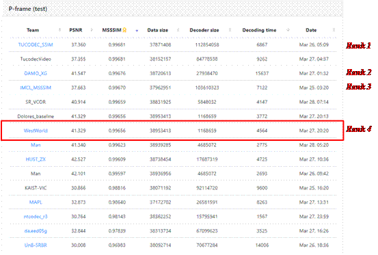 图1 CVPR-CLIC视频压缩赛道比赛结果