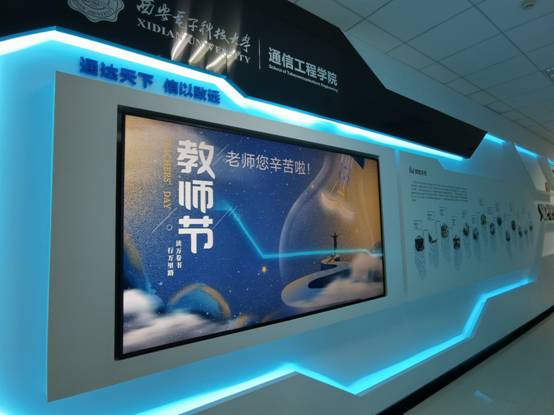 办公文化区点亮专门设计的电子宣传栏,显示“老师,您辛苦啦”,为第37个教师节营造氛围。