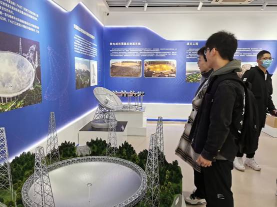 近年来取得的24项国家科学技术进步奖,其中涵盖了通信、电子、网络、计算机等多个高精尖技术领域,这些都让同学们非常地自豪。随着讲解员的脚步,同学们依次参观了通信、雷达、计算机、网络安全、深空探测、微电子六大主题展区,通过模型展览和图文交互的深入学习,同学们了解到密集无线电通信、立体空间电磁感知侦察、相控阵反隐身预警雷达、可动射电望远镜、大规模并行电磁工业软件等高科技设备的设计背景、运行原理和应用场景,既丰富了同学们对国家现代科学技术的认知,又为同学们提供了了解专业知识、明确未来研究学习方向的平台。