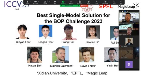 (EPFL),和Magic Leap组成的联合队伍获得了此次会议举办的BOP Challenge(Benchmark for 6D Object Pose Estimation)中的单模型赛道冠军,同时获邀在8th International Workshop on Recovering 6D Object Pose(R6D)上汇报。