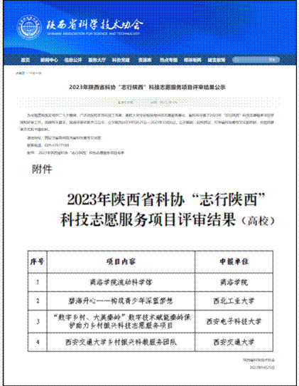 (通讯员 韩静)近日,陕西省科学技术协会发布《2023年陕西省科协“志行陕西”科技志愿服务项目评审结果公示》,共有6个项目入选,其中高校项目4个。木瓜视频