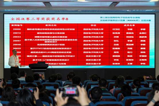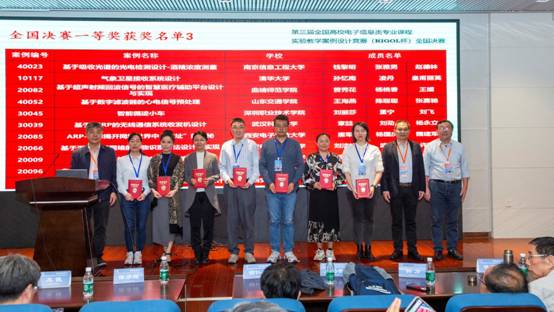 荣获本届案例竞赛总决赛全国一等奖的三个项目分别是:韦娟老师团队的《车辆状态检测系统的设计与实现》、李想老师团队的《多径环境下无线通信系统性能分析与优化实验》以及唐军老师团队的《ARP-带你揭开网络世界中“地址”的奥秘》;获得全国三等奖的三个项目分别是:付卫红老师团队的《随机信号通过非线性系统后的特性分析实验》、白勃老师团队的《无线物联网系统设计实验》以及赵建勋老师团队的《基于STM32的自动温度控制系统设计》。此外在前期举行的西部赛区初赛中,李毅老师团队的《5G移动通信系统网络规划虚拟仿真实验》和白明老师团队的《高频谐振功率放大器》获得西部赛区三等奖。