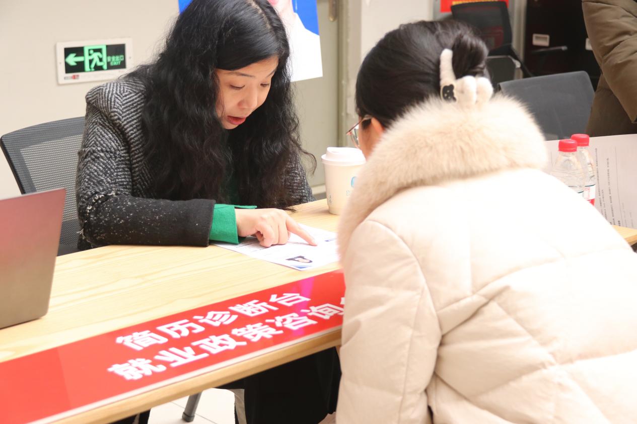 还特别设置了“简历诊断与就业咨询服务点”,邀请到学校校友,荣耀公司西部平台校园招聘总监卢英作为专家顾问,帮助求职学生修改简历,提供就业指导。