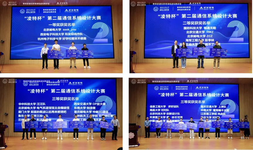 电信实验中心主任白文乐教授,教育部通信原理课程虚拟教研室负责人任光亮教授,武汉凌特电子技术有限公司董事长沈瑞华先生,大赛评委及参赛师生们出席了本次颁奖典礼。