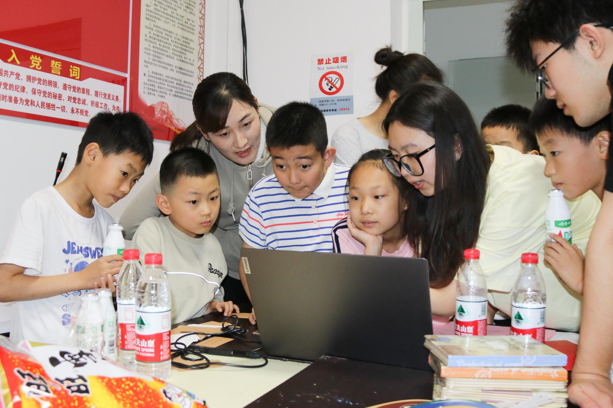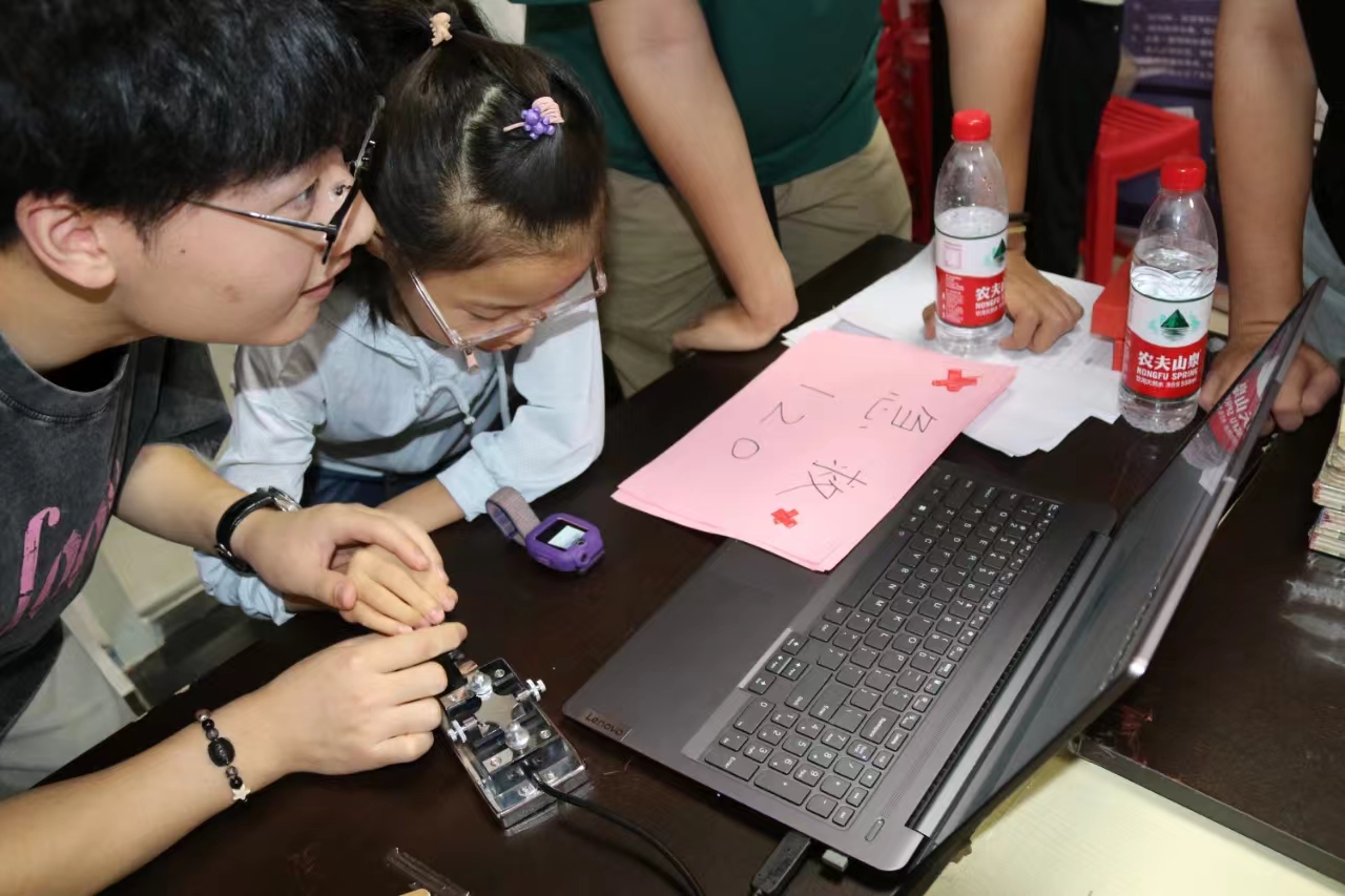 老教授,在随后进行重点知识互动提问环节中,志愿者引导每位学生大胆表达“自己未来想做什么”,并鼓励大家努力实现自己的梦想。最后,志愿者们组织小朋友们有序地进行摩尔斯电码动手实践活动,在志愿者的细心指导下每位小朋友都认真完成实践,不仅锻炼了学生的动手操作能力,也让他们领略到了科学的乐趣和奥妙。在整个教学过程中,志愿者对学生们进行一对一指导,耐心解答提出的相关问题,得到了社区负责同志的高度认可。