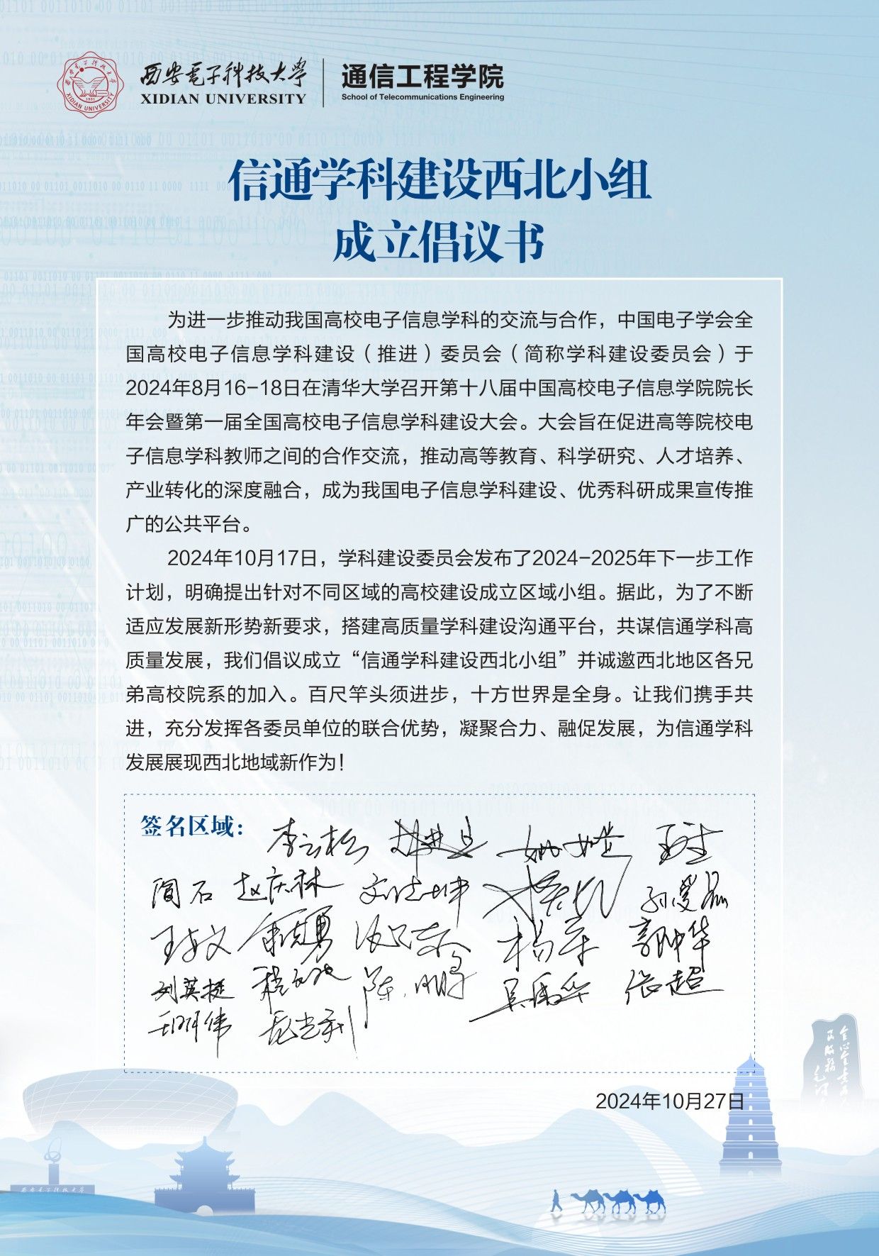 在自由交流讨论环节,与会代表们积极发言,就信通学科的建设、人才培养、科研合作等议题进行了深入探讨。大家一致认为,西北地区高校应紧密合作,充分发挥各自优势,共同推动信通学科的发展。与会代表还共同发起成立信通学科建设西北小组的倡议书。