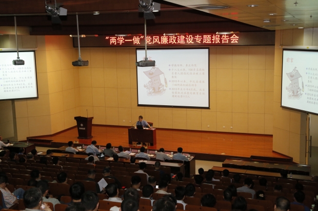 “两学一做” 党风廉政建设专题报告会在南校区举行,陕西省人民检察院培训中心主任冯耀辉为我校党员干部作预防职务犯罪专题报告。报告会由党委书记陈治亚同志主持。