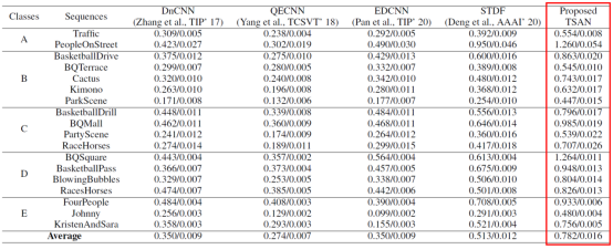 考率到转码压缩视频中存在的伪影是多次编码失真的叠加,先前的处理方案主要针对单次压缩损伤的修复,如图3所示,当其应用于转码视频上效果大打折扣。为此,结合实际应用场景,该论文将深度学习与转码视频去伪影任务相结合,利用转码视频特性,将初始编码信息作为中间辅助监督标签,设计辅助监督和全局监督损失函数引导网络训练。同时,该论文结合视频的时空相关特性设计了包括时域可变形对齐模块(TDAM)、金字塔空域融合模块(PSFM)等在内的卷积神经网络架构,并协同辅助监督(ASAM)和全局监督(GSAM)训练以更好地提升转码视频的画面质量,对应网络架构图见图4。因此,通过论文方法,可以在不增加视频码率的情况下大幅提高视频图像质量。表1以图像客观评价指标PSNR/SSIM增益作为客观评价指标衡量该论文方法较先前方法而言的增强性能提升程度。从